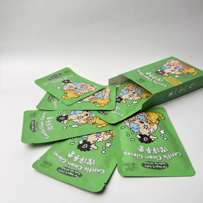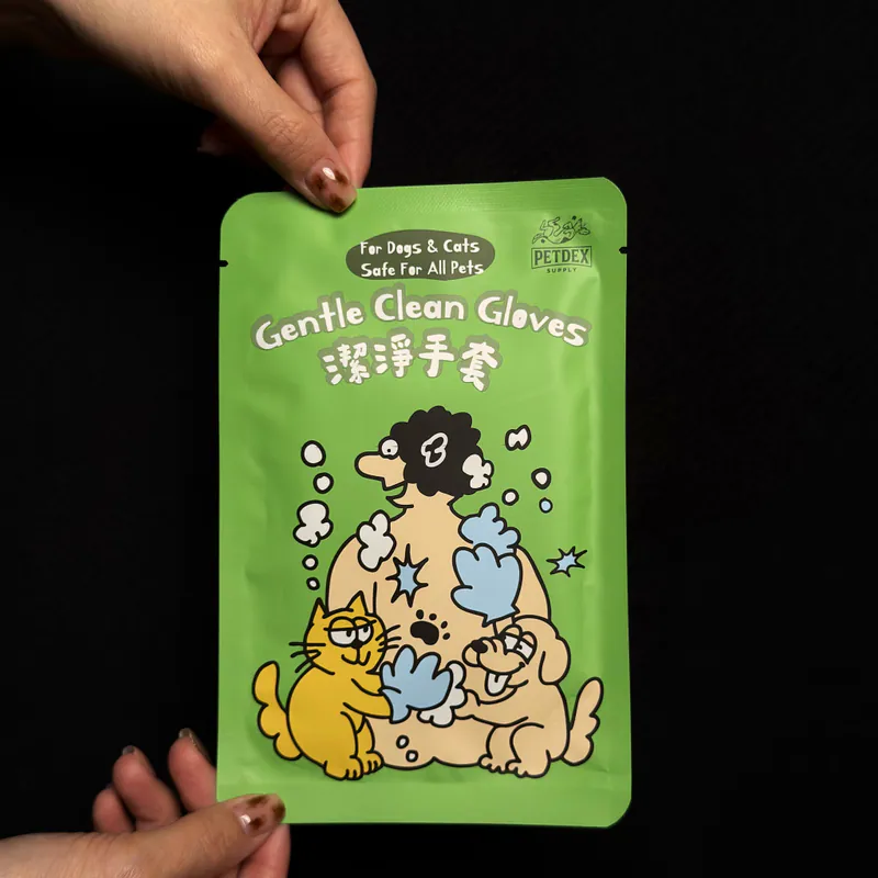 寵物專屬清絜手套 全方位清潔毛孩眼周、耳朵、腳腳等部位。 純水成分,添加保濕配方,尤其推薦長毛毛孩喔! 一盒 6 入,單片裝,外出攜帶更便利