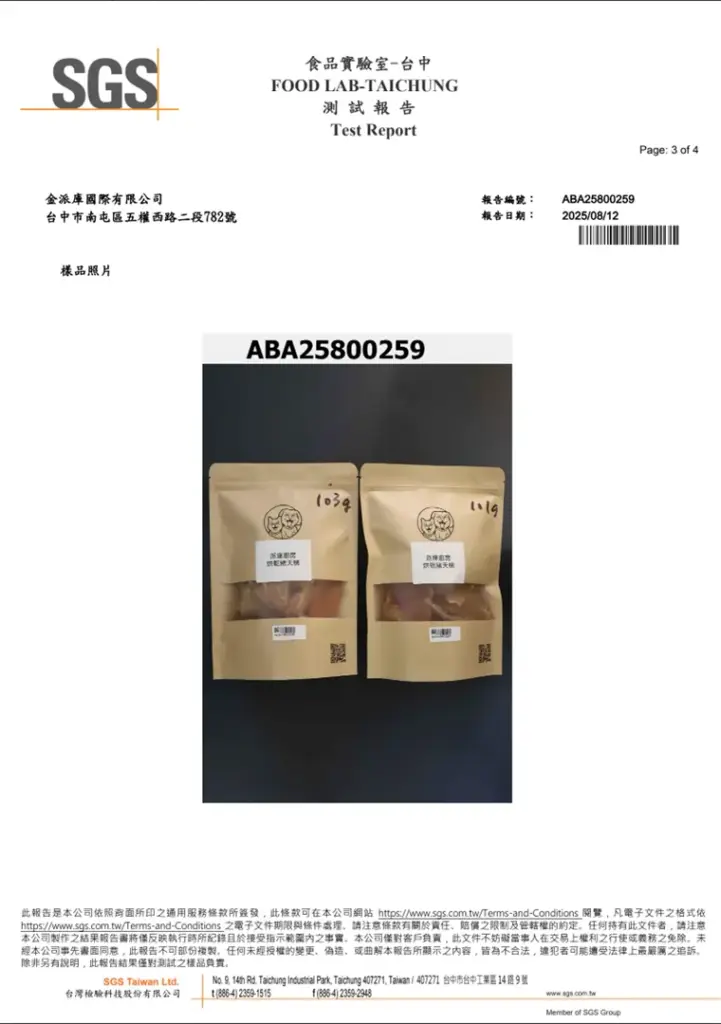 我們凍乾製程,採用通過 ISO22000 與 HACCP 認證的食品工廠,全程衛生、安全可溯源。 每批食品都經過第三方 SGS 檢驗合格層層把關,只為讓你放心,毛孩安心吃下每一口!